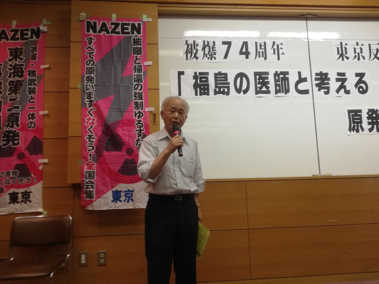 7月21日、東京のセシオン杉並で、福島から渡辺瑞也医師を講師に迎え、NAZEN(すべての原発いますぐなくそう!全国会議)東京主催による「福島の医師と考える原発と核」と題した講演会を開催しました。参加は100人近くの大盛況でした。